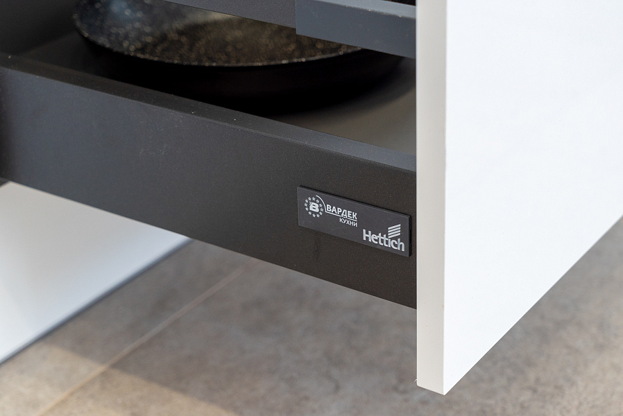 Десять лет на корпус и фурнитуру, два года на фасады. Гарантия прописана в договоре. Если что-то сломалось — приедем и починим за наш счёт.